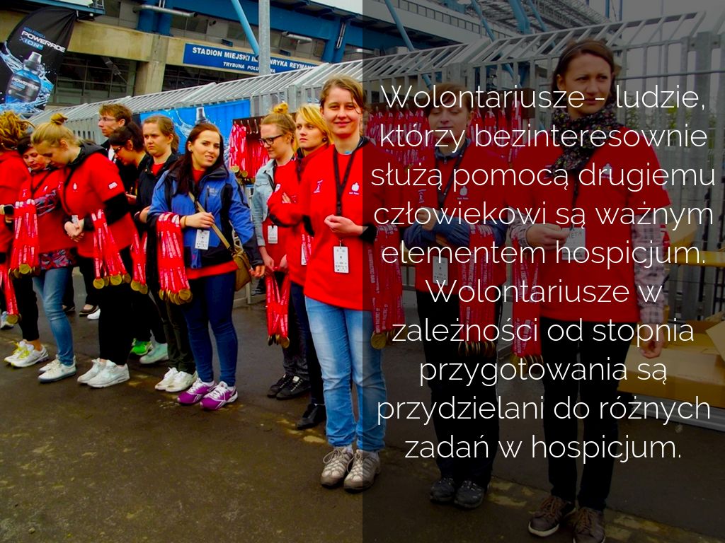 drugiemu człowiekowi są ważnym elementem hospicjum. Wolontariusze w zależności od stopnia przygotowania są
