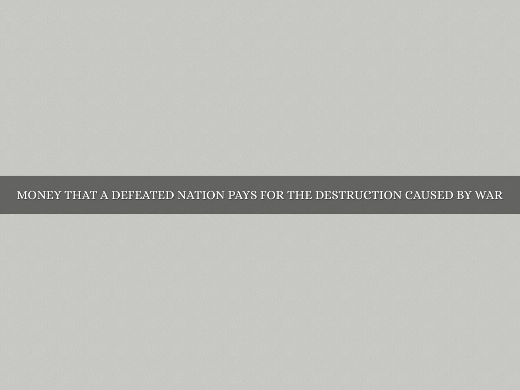 - Money that defeated nation pays for the destruction caused by war.