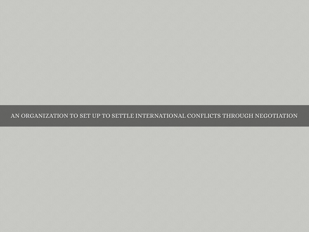 - An organiziatiom set up to settle international conflicts through negotiation