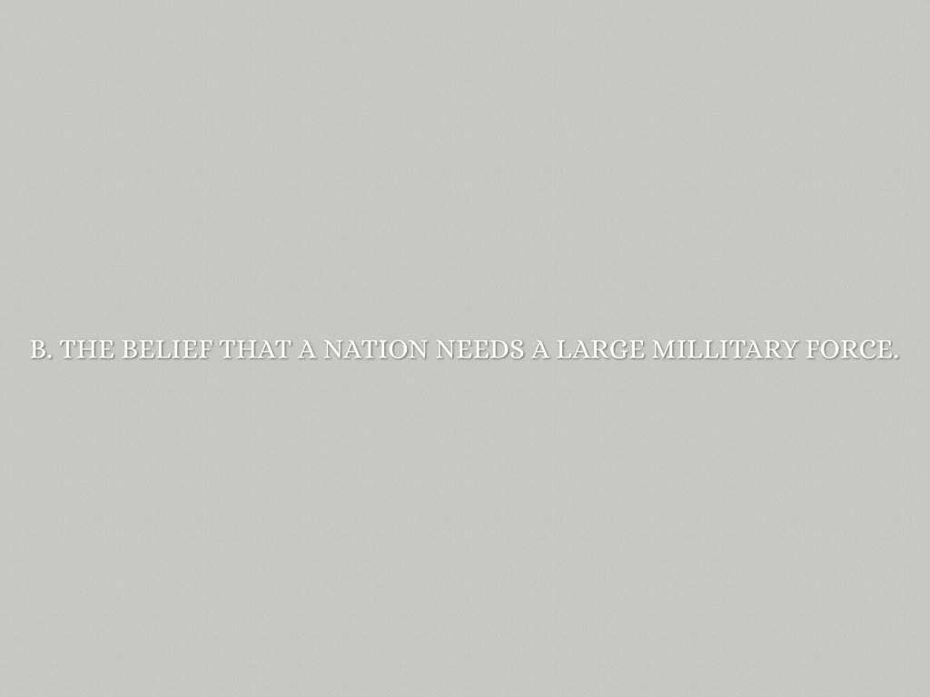- B. The belief that a nation needs a large millitary force.