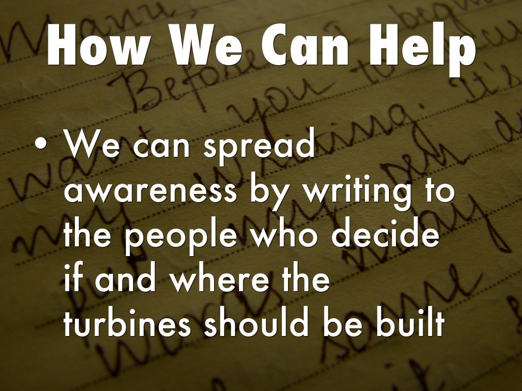 We can spread awareness by writing to the people who decide if and where the turbines should be built