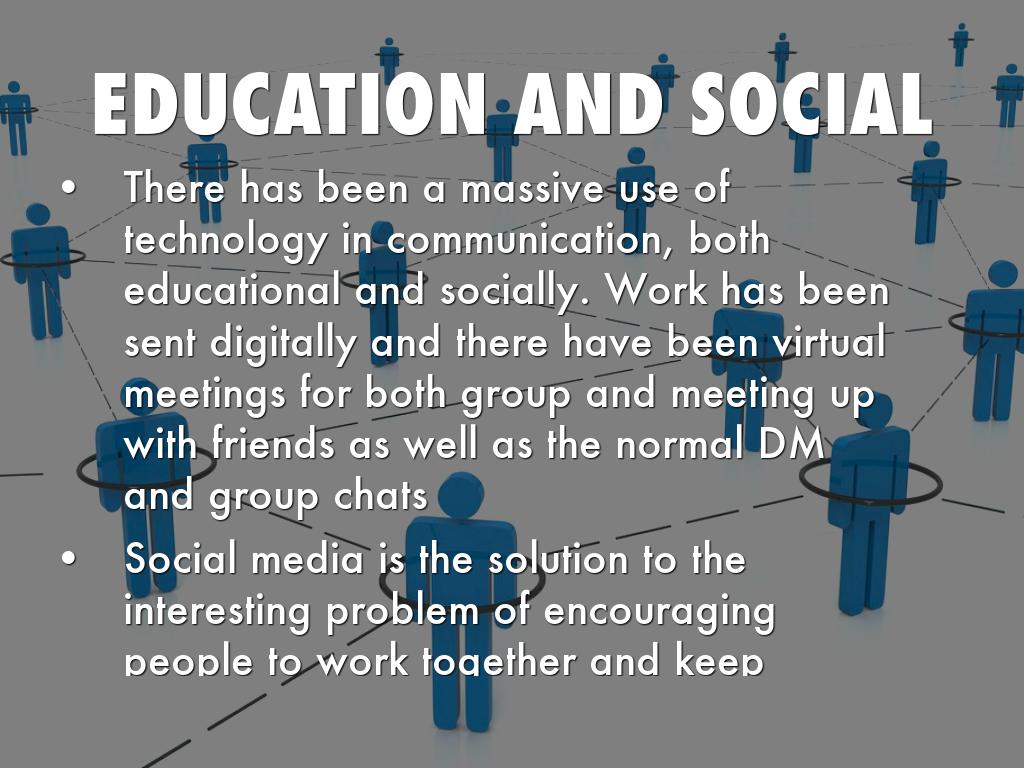 There has been a massive use of technology in communication, both educational and socially. Work has been sent digitally and there have been virtual meetings for both group and meeting up with friends as well as the normal DM and group chats