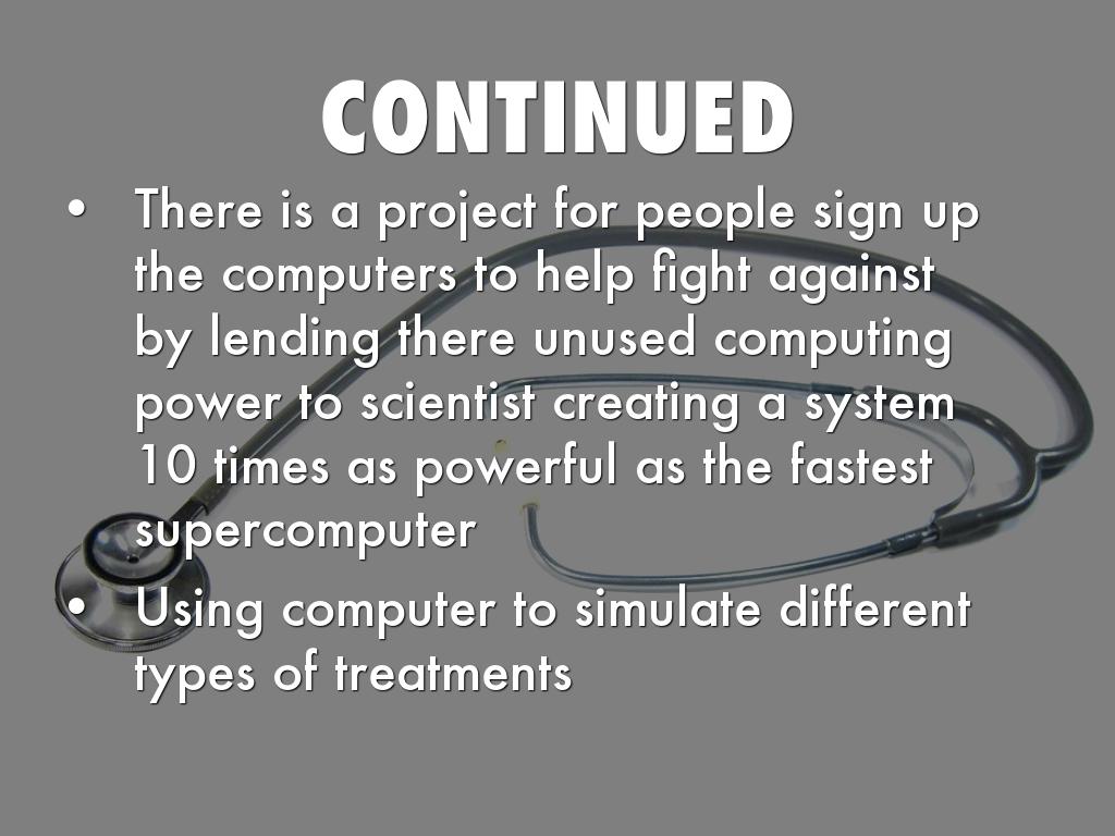 There is a project for people sign up the computers to help fight against by lending there unused computing power to scientist creating a system 10 times as powerful as the fastest supercomputer