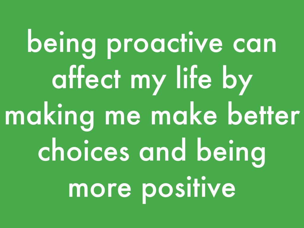 being proactive can affect my life by making me make better choices and being more positive