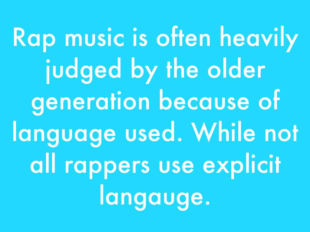 Rap music is often heavily judged by the older generation because of language used. While not all rappers use explicit langauge.