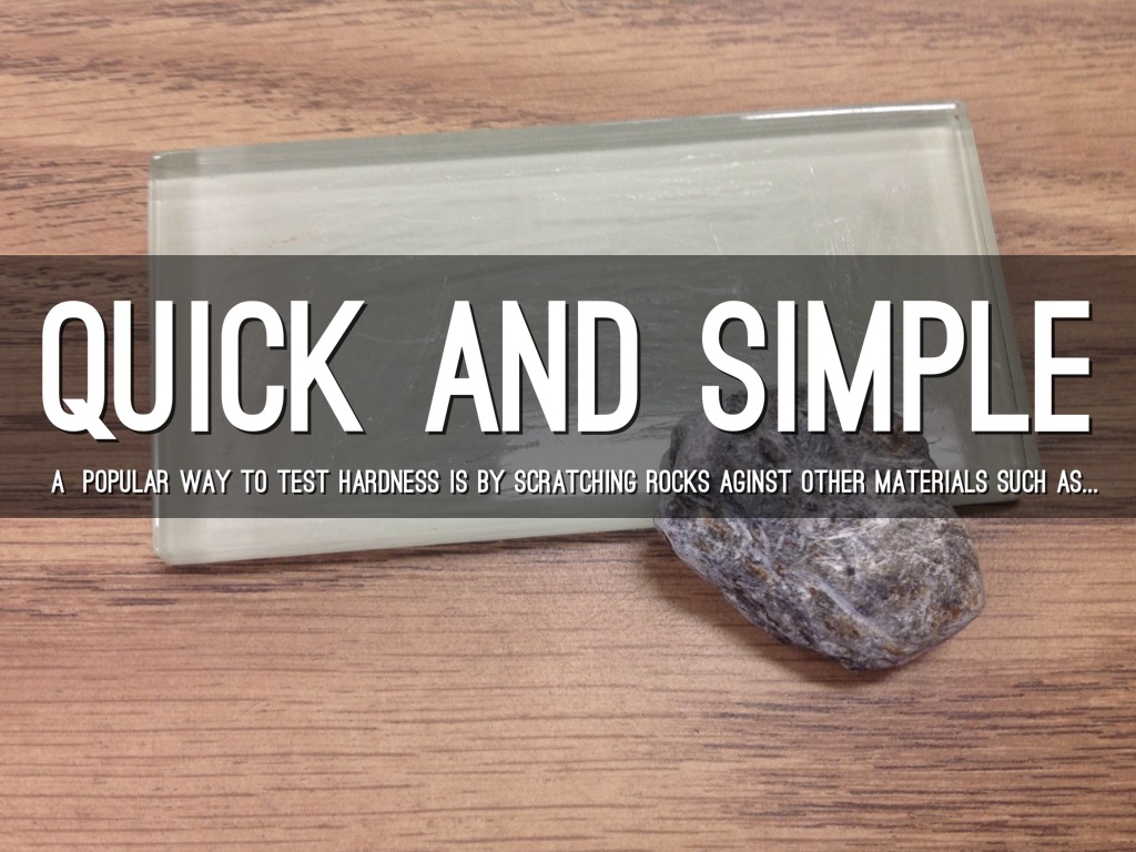 A POPULAR WAY TO TEST HARDNESS IS BY SCRATCHING ROCKS AGINST OTHER MATERIALS SUCH AS...