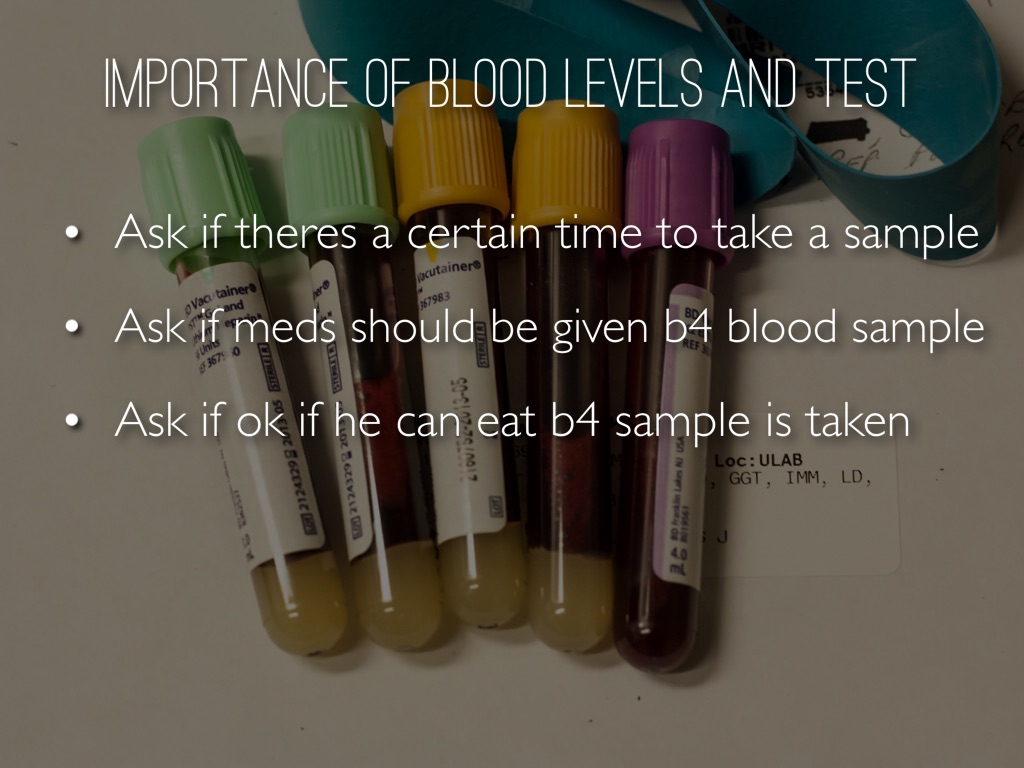IMPORTANCE OF BLOOD LEVELS AND TEST