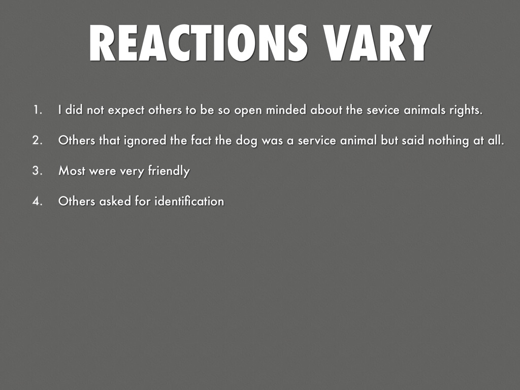 • I did not expect others to be so open minded about the sevice animals rights.