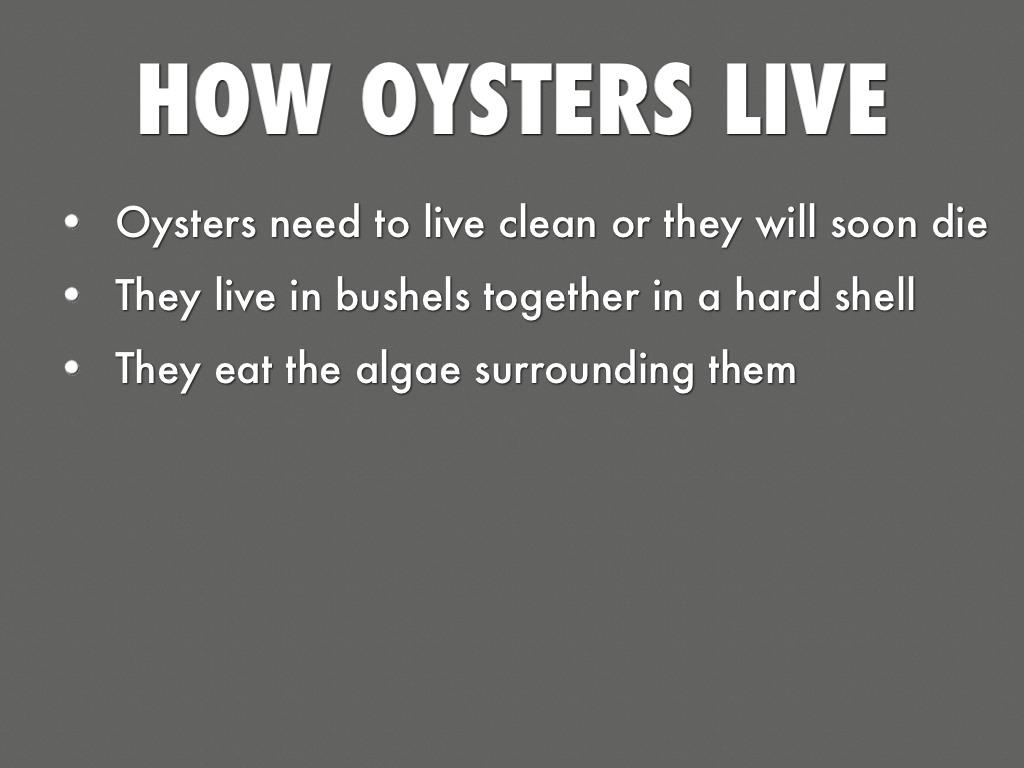 • Oysters need to live clean or they will soon die