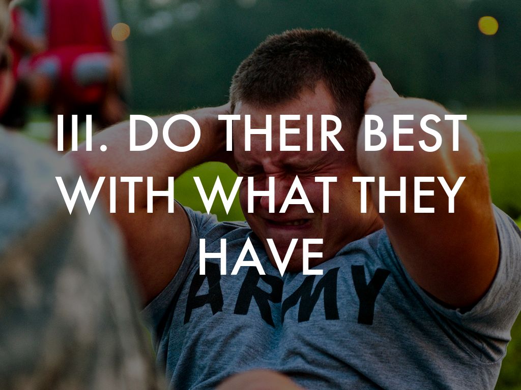 III. DO THEIR BEST WITH WHAT THEY HAVE
