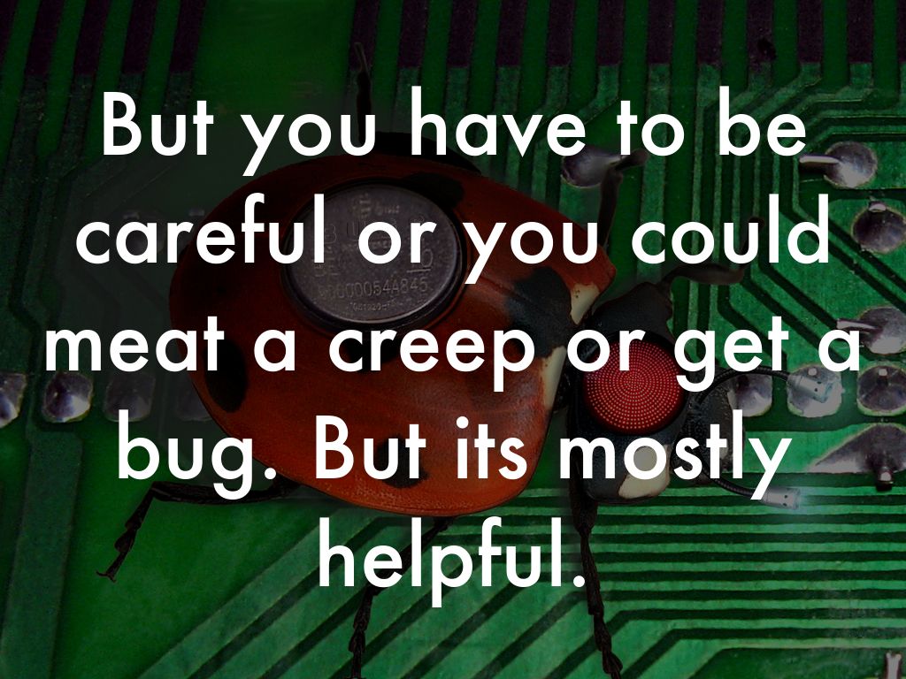 But you have to be careful or you could meat a creep or get a bug. But its mostly helpful.