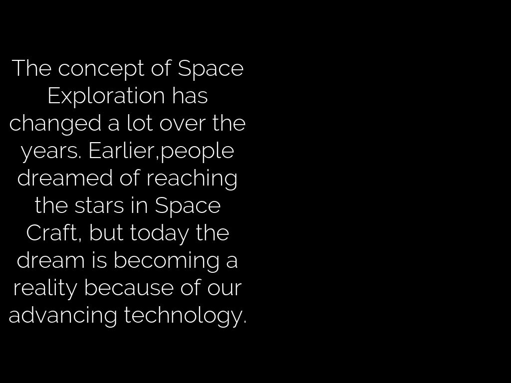 The concept of Space Exploration has changed a lot over the years. Earlier,people dreamed of reaching the stars in Space Craft, but today the dream is becoming a reality because of our advancing technology.