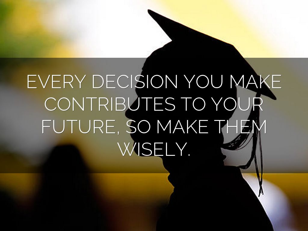 EVERY DECISION YOU MAKE CONTRIBUTES TO YOUR FUTURE, SO MAKE THEM WISELY.
