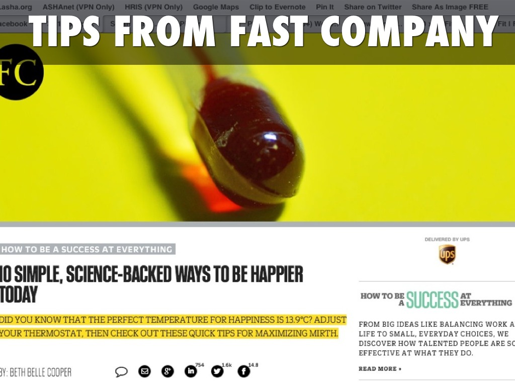 10 Simple, Science-Backed Ways To Be Happier Today from Fast Company.