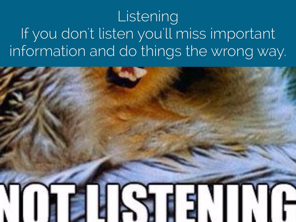 If you don't listen you'll miss important information and do things the wrong way.