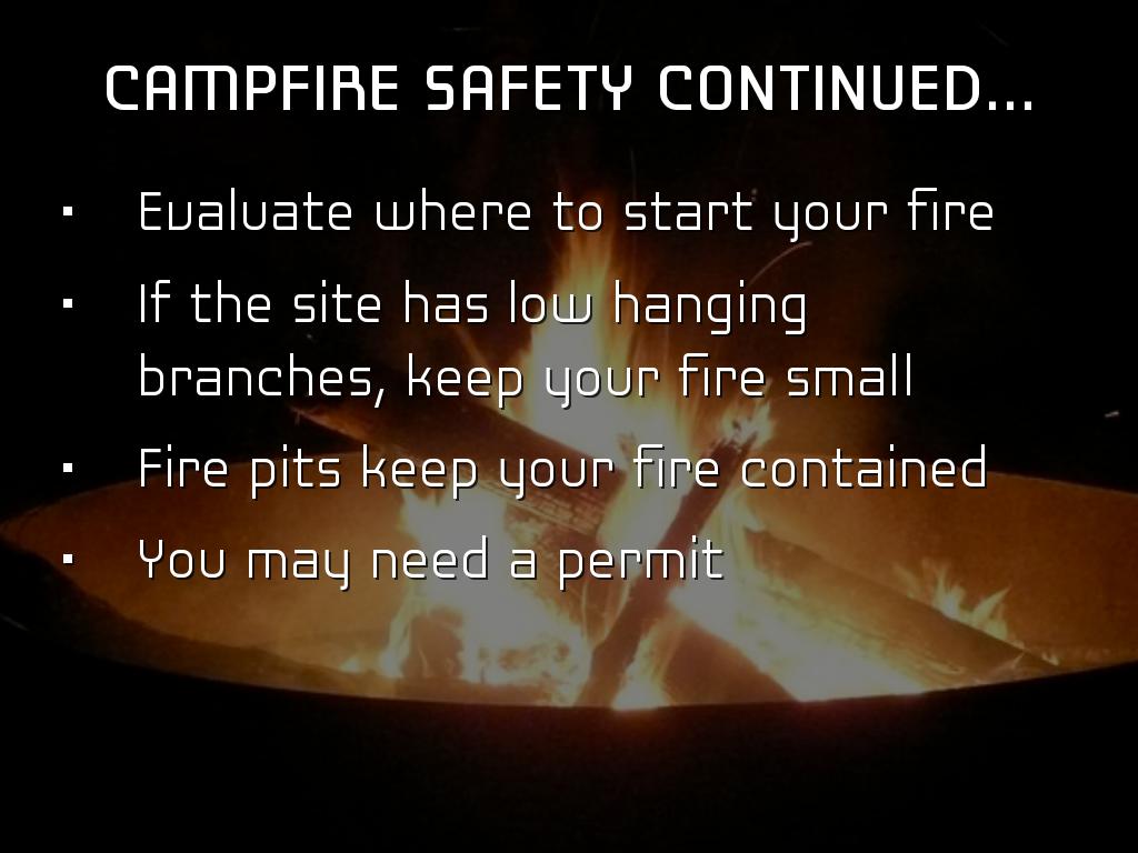 • If there is no fire ring use rocks or make a 1-in. Tall wall of dirt around the fire