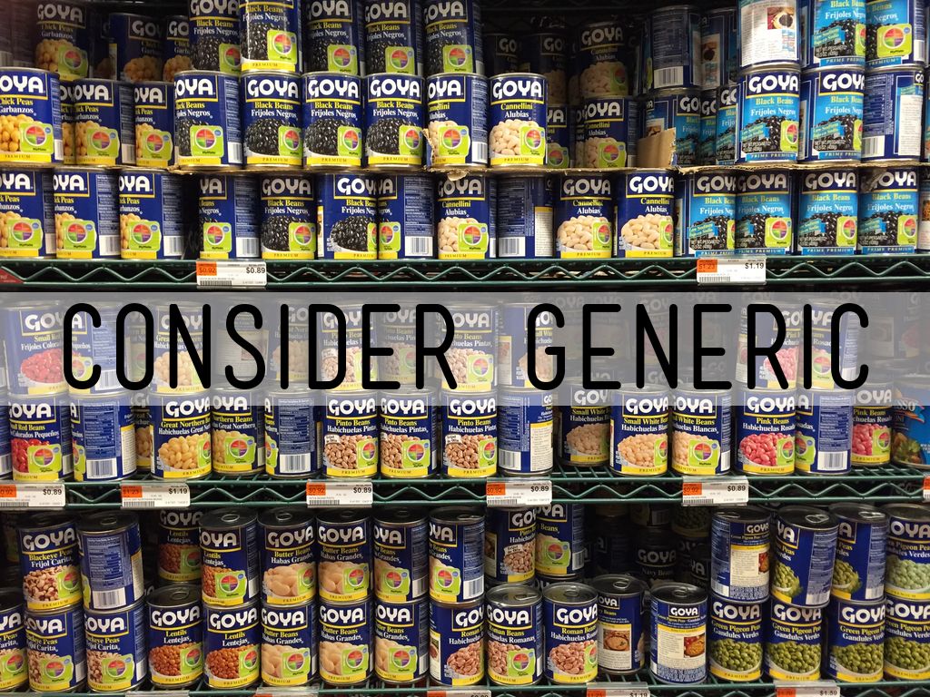 Compare the ingredients on some of your favorite products with the generic store versions. Odds are, the ingredients will be identical but the prices will vary. Examples of generic brands would be: 365 from Whole Foods, Great Value from Walmart, Nature's Promise from Stop & Shop, etc.