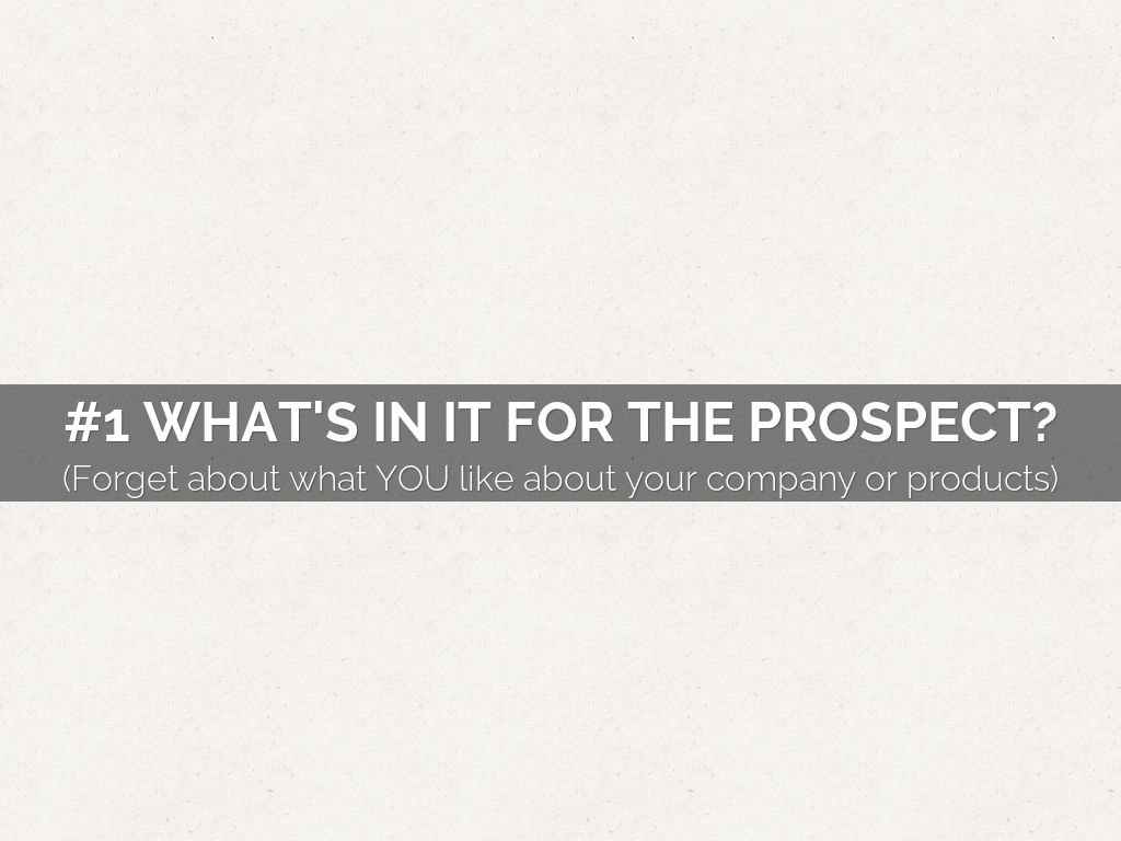 #1 WHAT'S IN IT FOR THE PROSPECT?