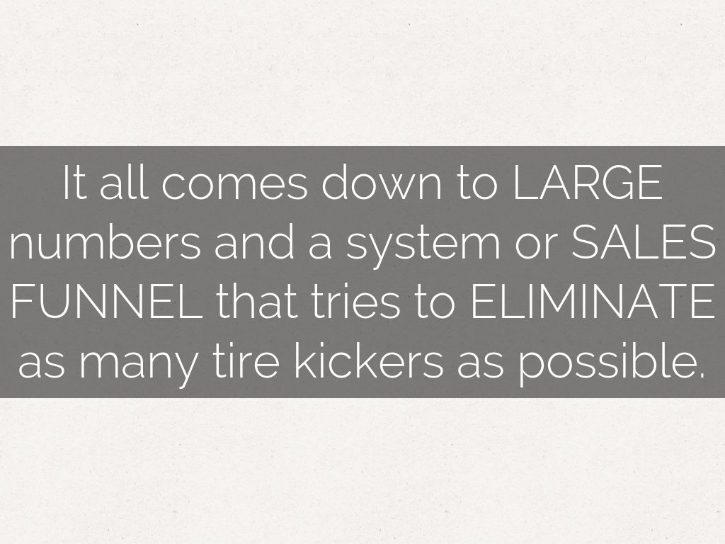 It all comes down to LARGE numbers and a system or SALES FUNNEL that tries to ELIMINATE as many tire kickers as possible.