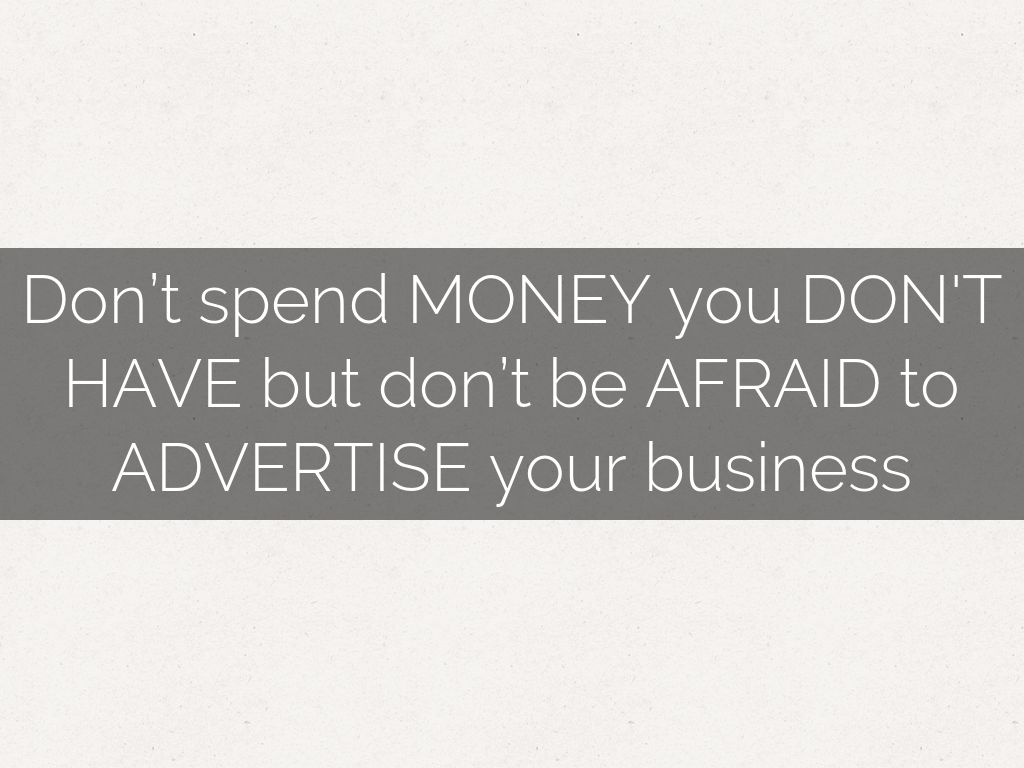 Don’t spend MONEY you DON'T HAVE but don’t be AFRAID to ADVERTISE your business