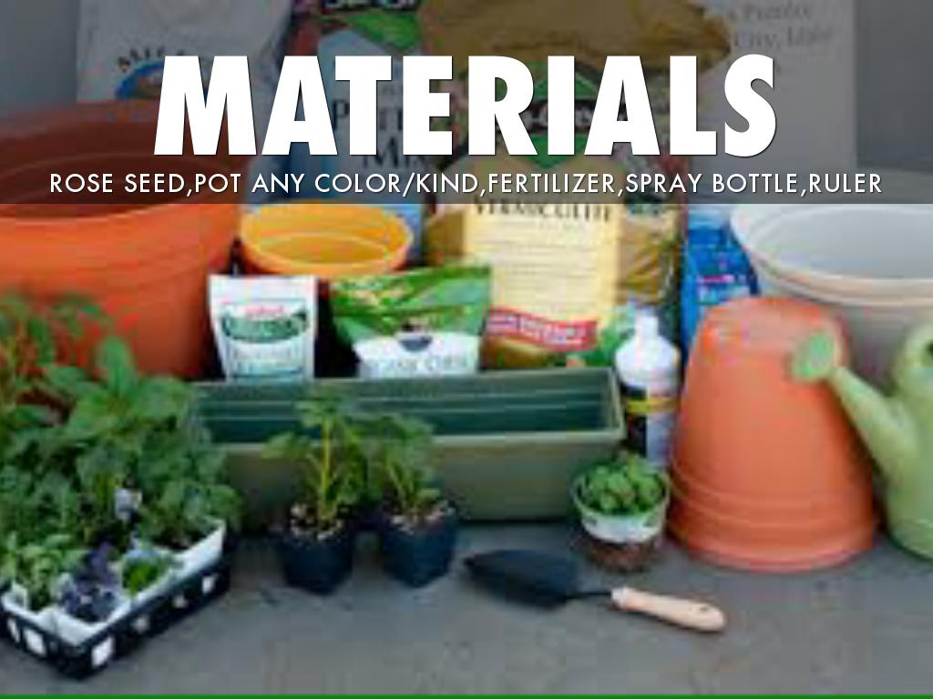 ROSE SEED,POT ANY COLOR/KIND,FERTILIZER,SPRAY BOTTLE,RULER