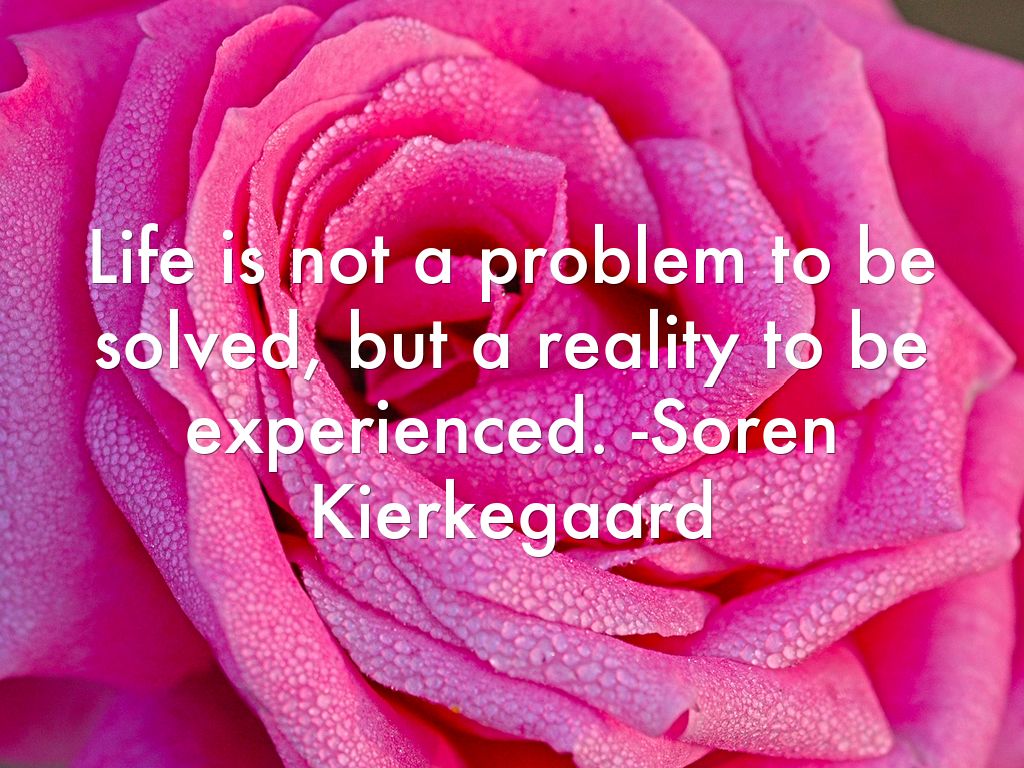 Life is not a problem to be solved, but a reality to be experienced. -Soren Kierkegaard