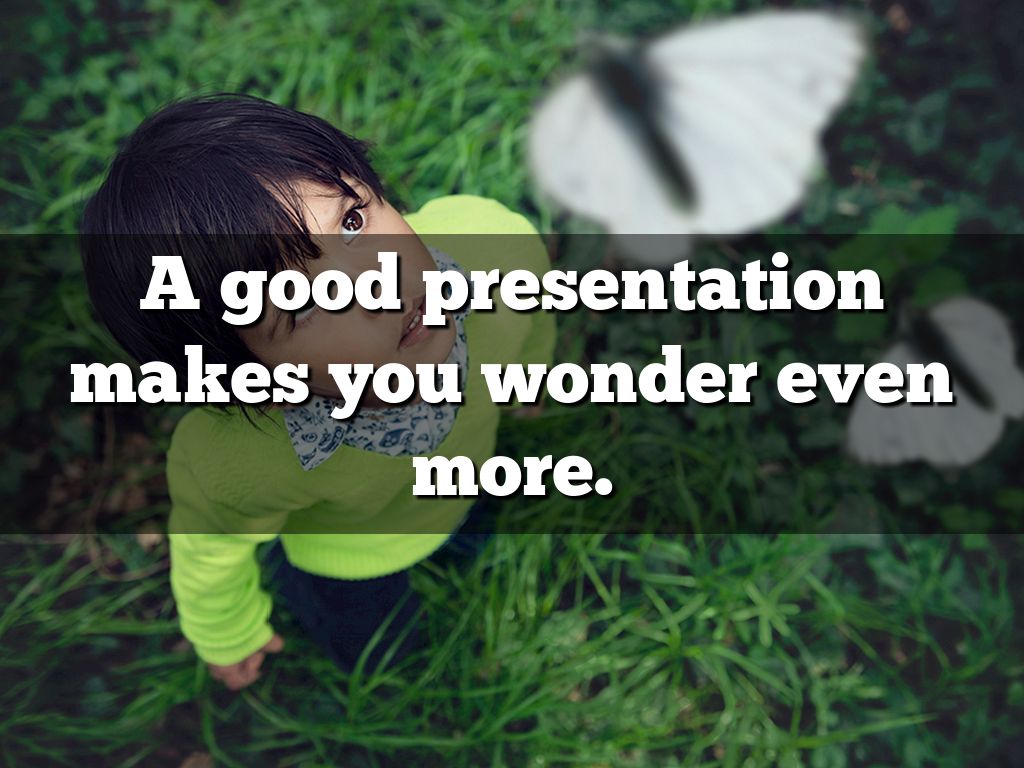 It can't contain too many words in just one slide. Or have random pictures all over the place
