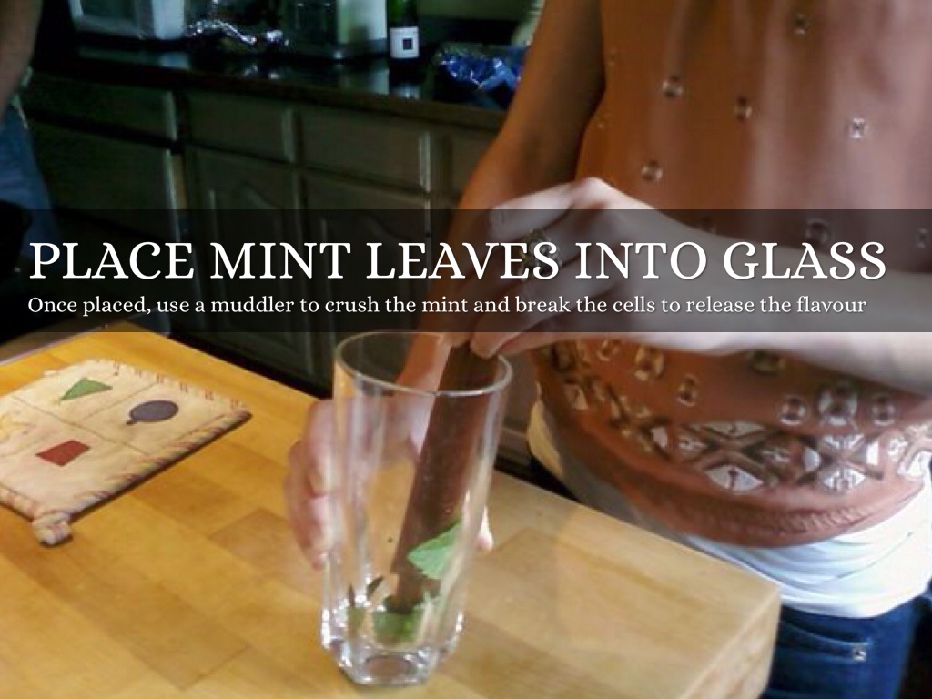 Once placed, use a muddler to crush the mint and break the cells to release the flavour