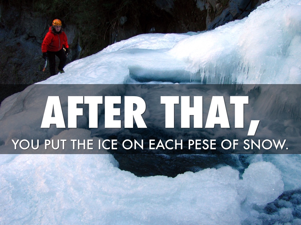 YOU PUT THE ICE ON EACH PESE OF SNOW.