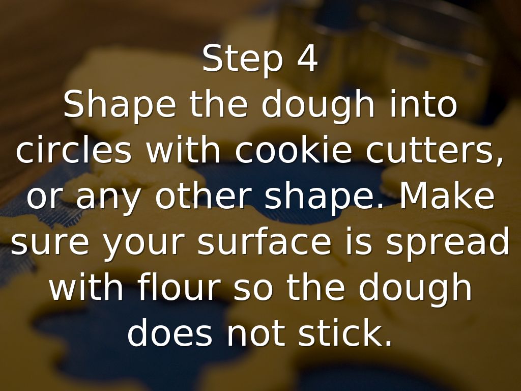 Shape the dough into circles with cookie cutters, or any other shape. Make sure your surface is spread with flour so the dough does not stick.