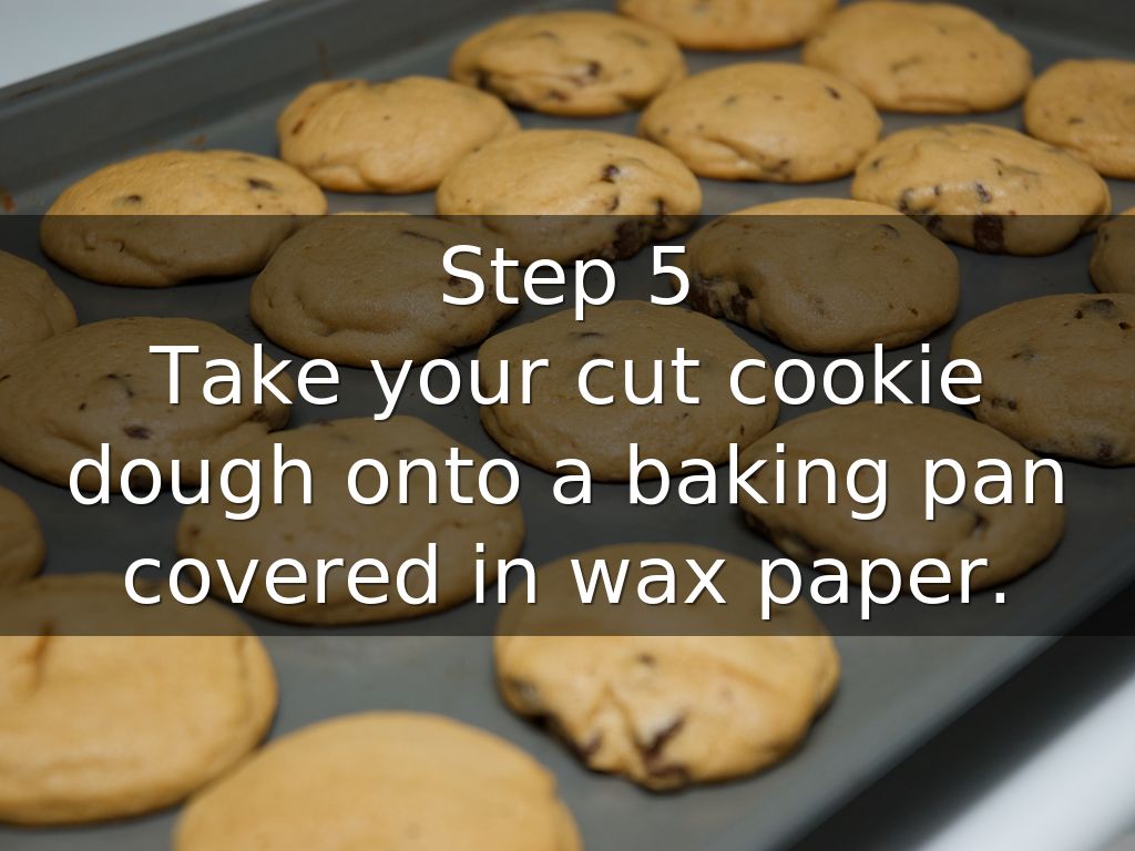 Take your cut cookie dough onto a baking pan covered in wax paper.