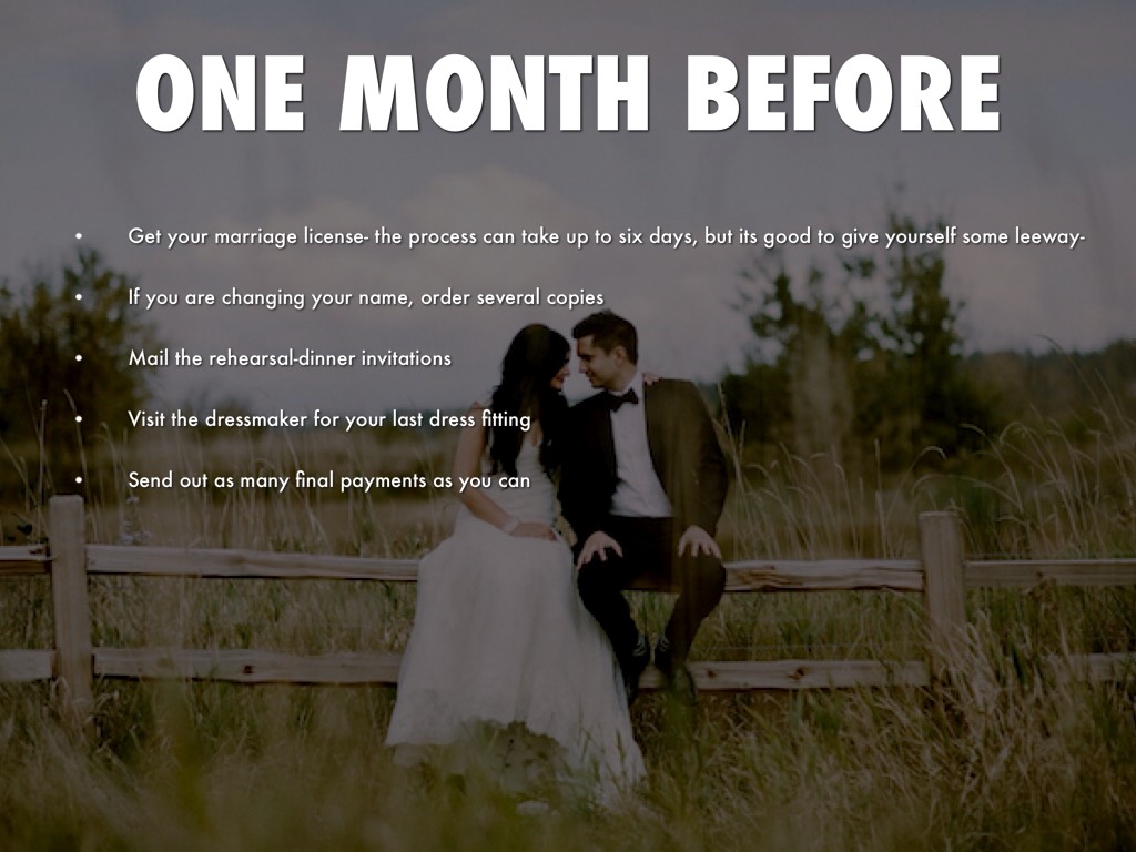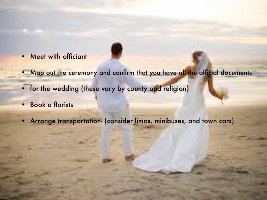 • Get your marriage license- the process can take up to six days, but its good to give yourself some leeway-