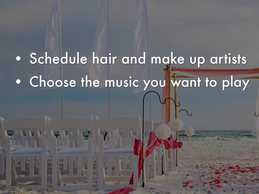 • Confirm times for hair and make up and all vendors