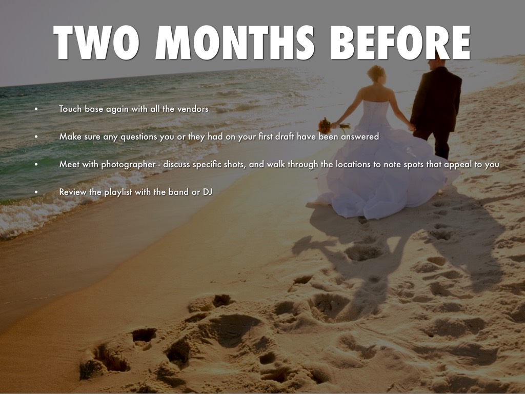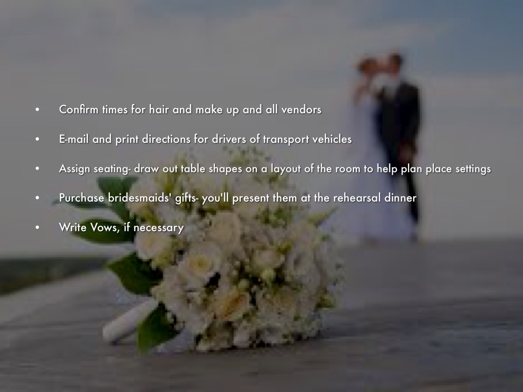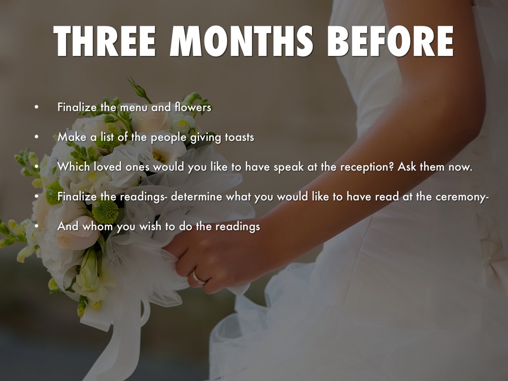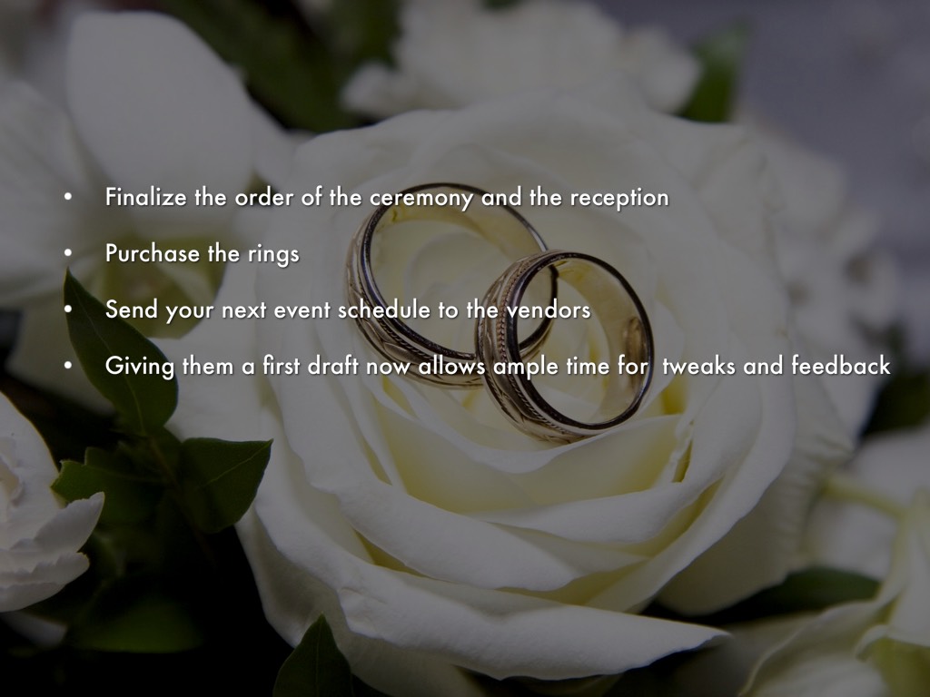 • Finalize the order of the ceremony and the reception