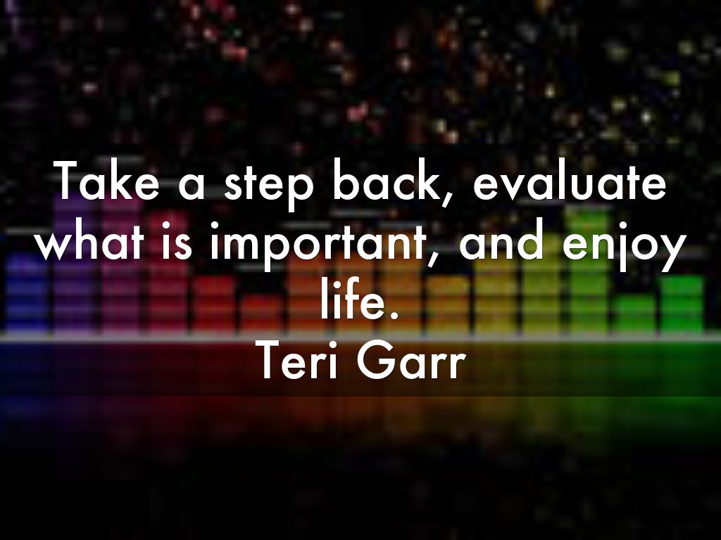 Take a step back, evaluate what is important, and enjoy life.