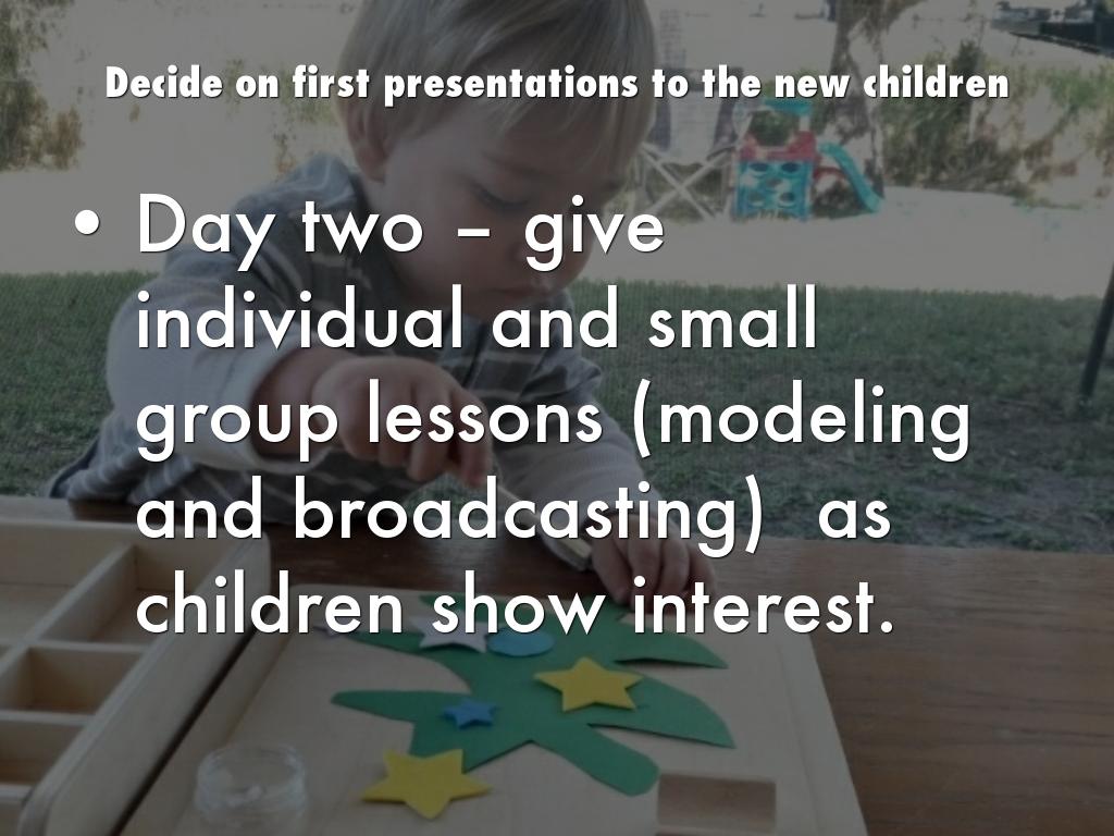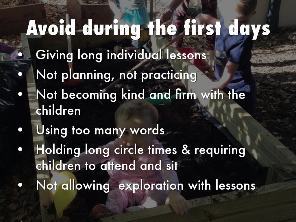 Meet with parents: learn about their child (home care giving, interests, needs, learning styles, experiences with other children, experiences at another school)