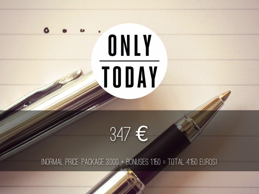 (NORMAL PRICE: PACKAGE 3.000 + BONUSES 1.150 = TOTAL 4.150 EUROS)