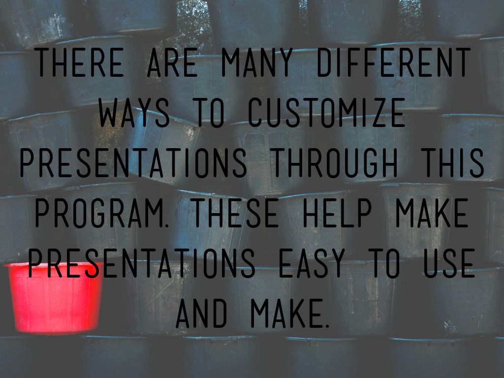 There are many different ways to customize presentations through this program. These help make presentations easy to use and make.