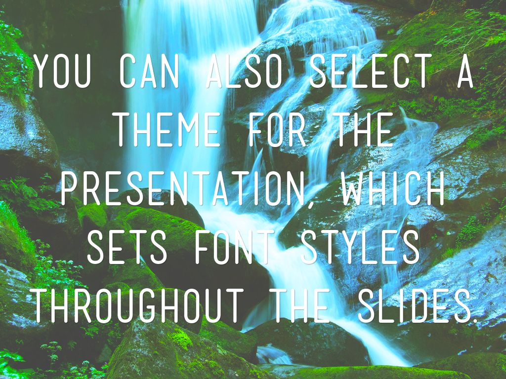 You can also select a theme for the presentation, which sets font styles throughout the slides.