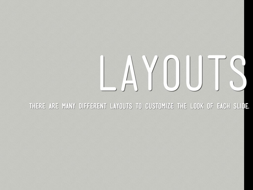 THERE ARE MANY DIFFERENT LAYOUTS TO CUSTOMIZE THE LOOK OF EACH SLIDE.