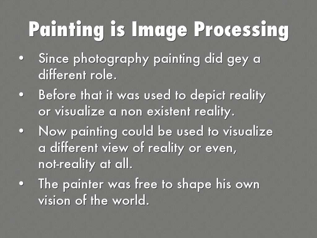 - Now painting could be used to visualize a different view of reality or even, not-reality at all.