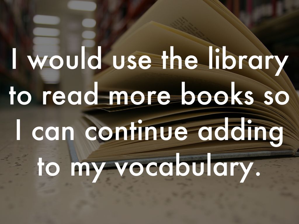 I would use the library to read more books so I can continue adding to my vocabulary.
