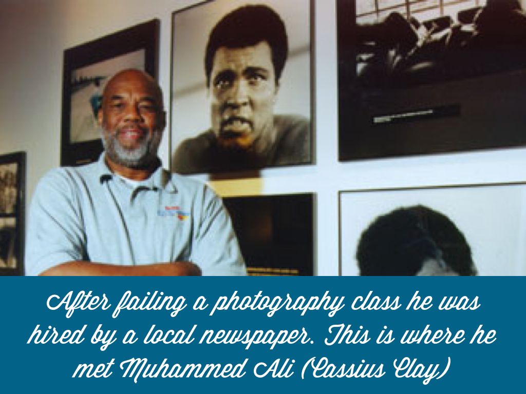 After failing a photography class he was hired by a local newspaper. This is where he met Muhammed Ali (Cassius Clay)