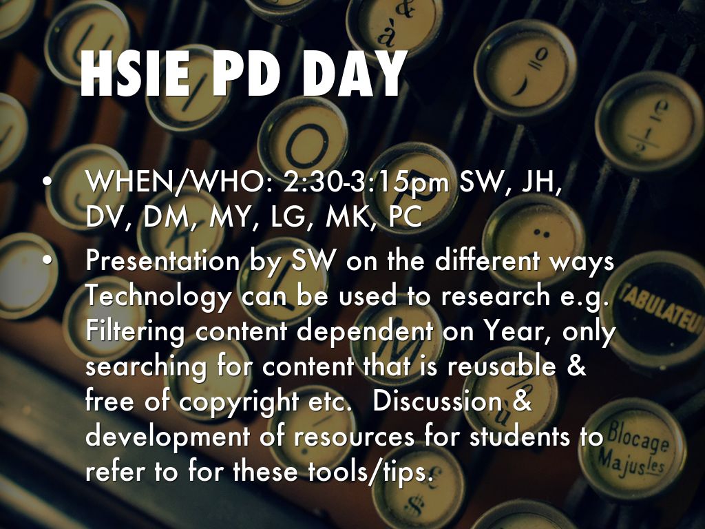 Presentation by SW on the different ways Technology can be used to research e.g. Filtering content dependent on Year, only searching for content that is reusable & free of copyright etc.