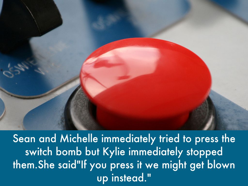 Sean and Michelle immediately tried to press the switch bomb but Kylie immediately stopped them.She said"If you press it we might get blown up instead."