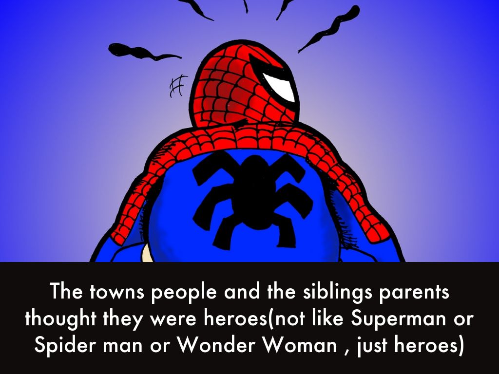The towns people and the siblings parents thought they were heroes(not like Superman or Spider man or Wonder Woman , just heroes)