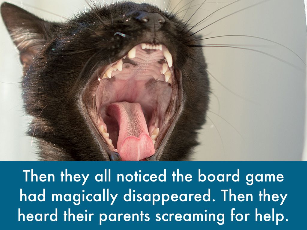 Then they all noticed the board game had magically disappeared. Then they heard their parents screaming for help.