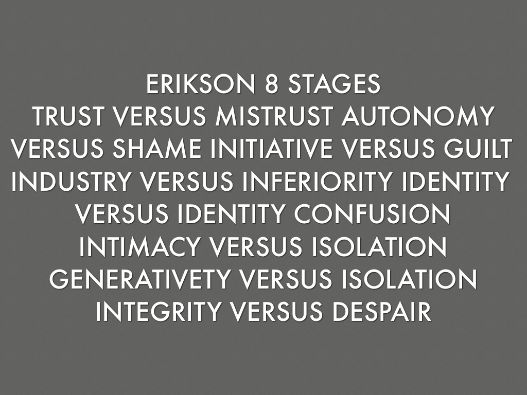 TRUST VERSUS MISTRUST AUTONOMY VERSUS SHAME INITIATIVE VERSUS GUILT
