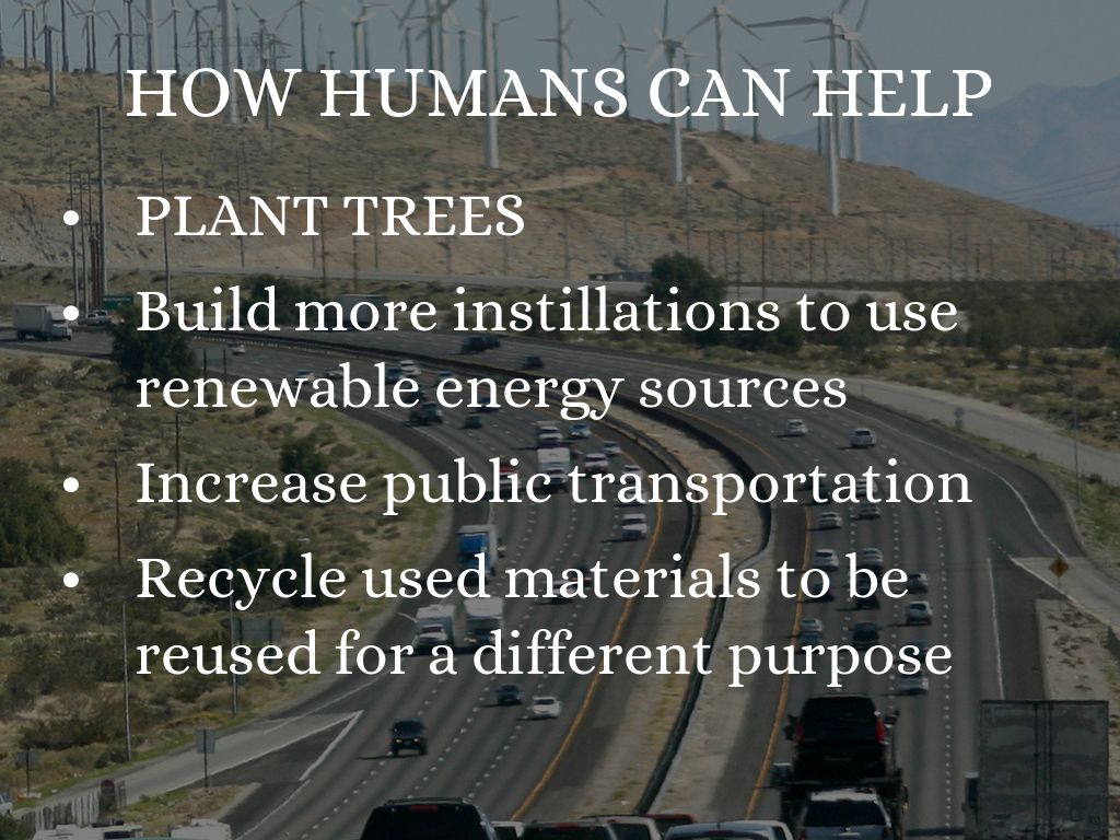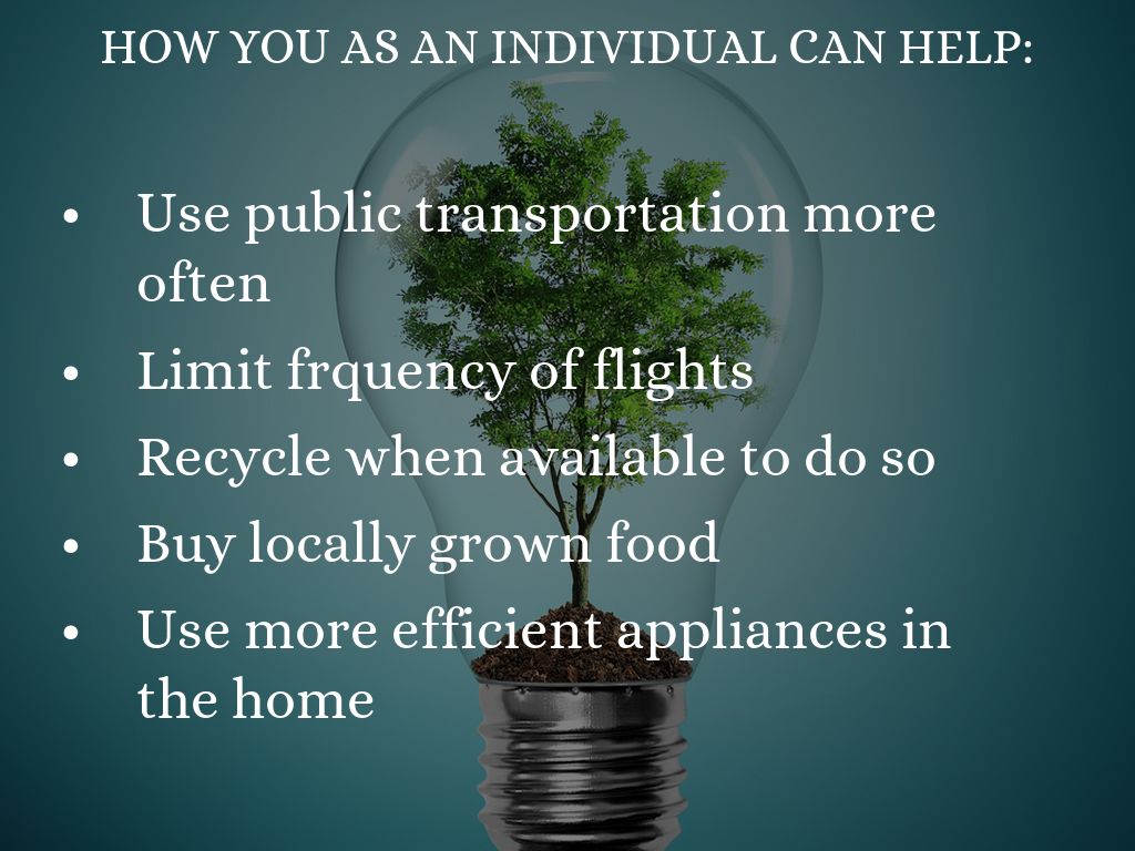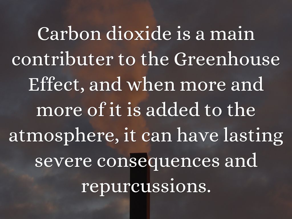 Carbon dioxide is a main contributer to the Greenhouse Effect, and when more and more of it is added to the atmosphere, it can have lasting severe consequences and repurcussions.