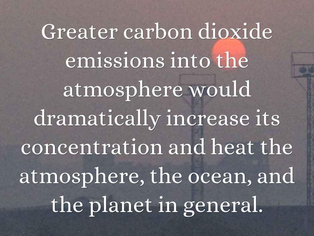 Greater carbon dioxide emissions into the atmosphere would dramatically increase its concentration and heat the atmosphere, the ocean, and the planet in general.